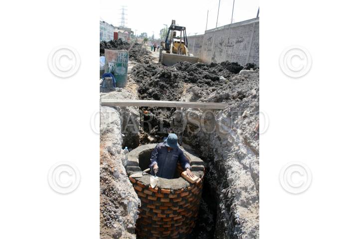 CHIMALHUACÁN, EDO. DE MEX., 14FEBRERO2009.- Ante el rezago en materia de agua potable e infraestructura hidráulica, el gobierno municipal a través del Organismo Descentralizado de Agua Potable, Alcantarillado y Saneamiento (ODAPAS), intensifica las obras de introducción de redes de drenaje y de agua potable en beneficio de más de tres mil hogares del municipio. FOTO: MARIO NULO/CUARTOSCURO.COM