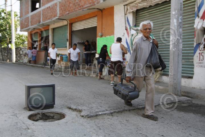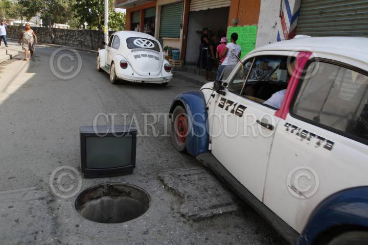 ACAPULCO, GUERRERO, 17ABRIL2014.- Vecinos de la avenida principal de Las Parotas, de la colonia Las Cruces, denunciaron a este medio que en esta semana se incrementó el robo de más de 15 las tapas de las alcantarillas, lo que representa un grave peligro tanto para los automovilistas como para los peatones. FOTO: BERNANDINO HERNÁNDEZ /CUARTOSCURO.COM