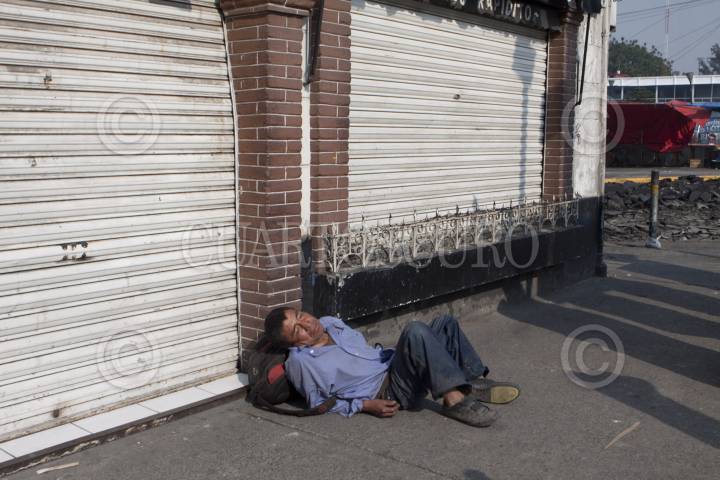 MORELIA, MICHOACÁN, 18MARZO2015.- Un hombre duerme a plena avenida Nocupetaro, a solo 4 cuadras del centro de la ciudad. FOTO: JUAN JOSÉ ESTRADA SERAFÍN /CUARTOSCURO.COM