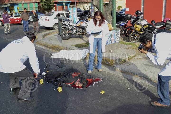 MÉXICO, D.F.,10DICIEMBRE2012.- Un hombre perdió la vida tras ser atropellado por un vehículo que logro darse a la fuga sobre la avenida eje 5 Sur y Peten de la colonia Narvarte. Elementos periciales acudieron al lugar para realizar los peritajes correspondientes. FOTO: LUIS CARBAYO /CUARTOSCURO.COM