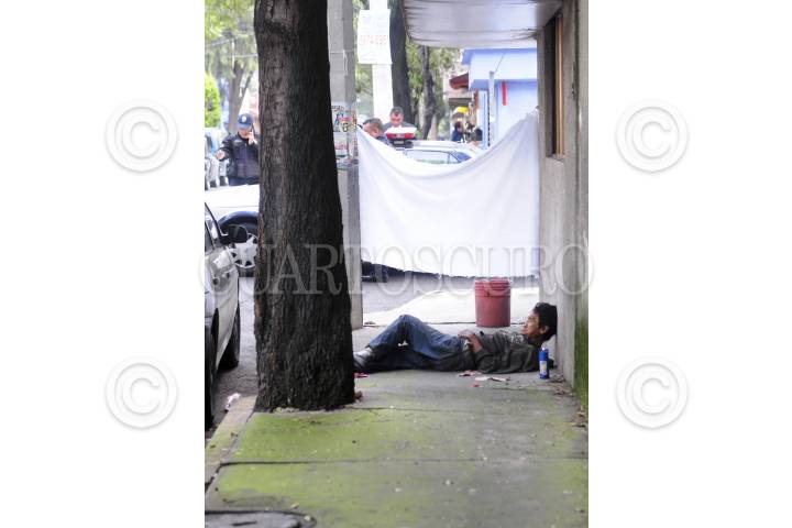 MÉXICO, D.F., 01ENERO2012.- Debido al abuso del alcohol durante los festejos de año Nuevo un hombre pernoctó sobre la Calzada de Guadalupe. FOTO: RODOLFO ANGULO/CUARTOSCURO.COM
