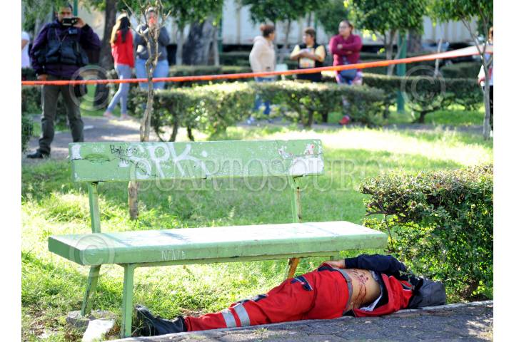 CIUDAD DE MÉXICO, 02OCTUBRE2018.- Tras estar tomando con sus amigos el día de ayer en el parque del Niño Quemado, hoy fue hallado muerto apuñalado de bajo de una banca, esto en Circuito interior y Quetzalcóatl, colonia Peñón de los Baños FOTO: ARMANDO MONROY /CUARTOSCURO.COM