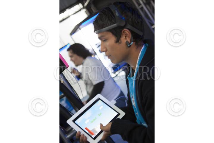 MÉXICO, DF., 18MARZO2013.- Continúa la exposición Aldea Digital en la plancha del zócalo capitalino. En el lugar se muestran aparatos con nuevas tecnologías como una diadema que conecta la mente con las tabletas, para así, poder jugar sin necesidad de utilizar las manos. FOTO: IVÁN STEPHENS /CUARTOSCURO.COM