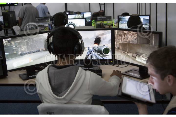MÉXICO, DF., 18MARZO2013.- Continúa la exposición Aldea Digital en la plancha del zócalo capitalino. Jóvenes se acercan a la tecnología utilizando juguetes bélicos. FOTO: IVÁN STEPHENS /CUARTOSCURO.COM