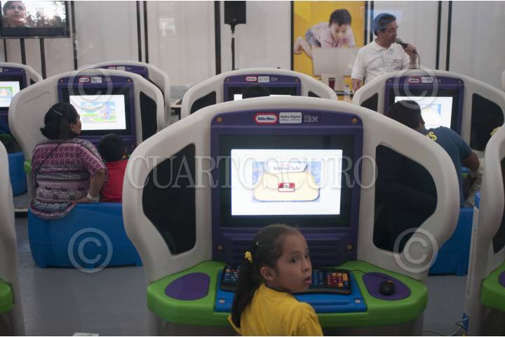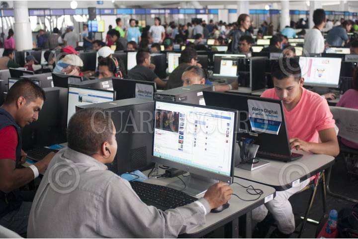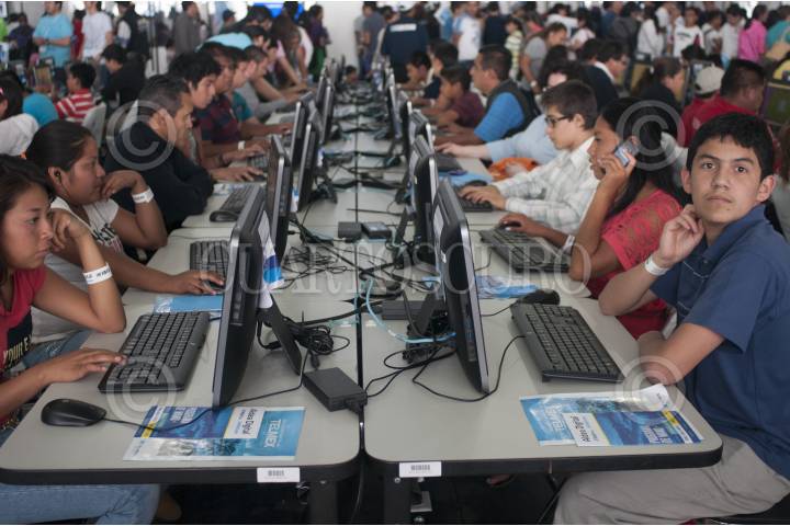 MÉXICO, D.F., 15ABRIL2014.- Miles de visitantes se dieron cita en la explanada del zócalo capitalino para visitar las instalaciones de la Aldea Digital. FOTO: IVÁN STEPHENS /CUARTOSCURO.COM