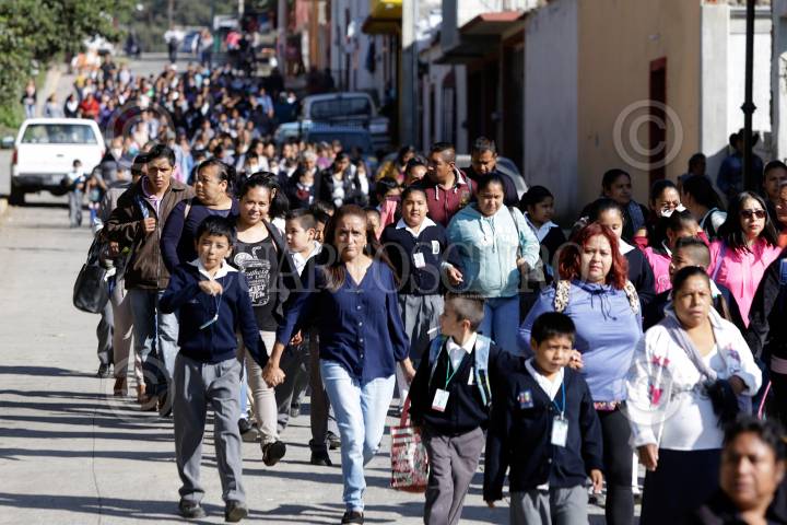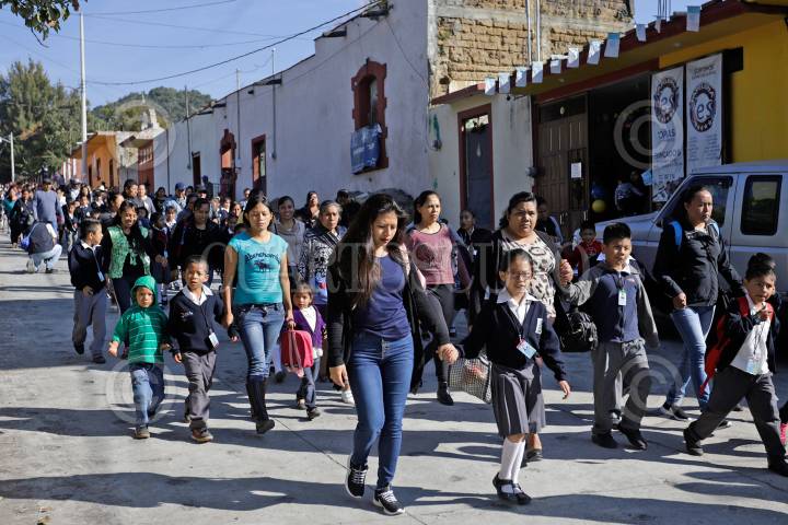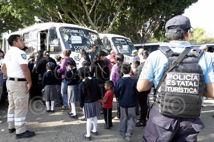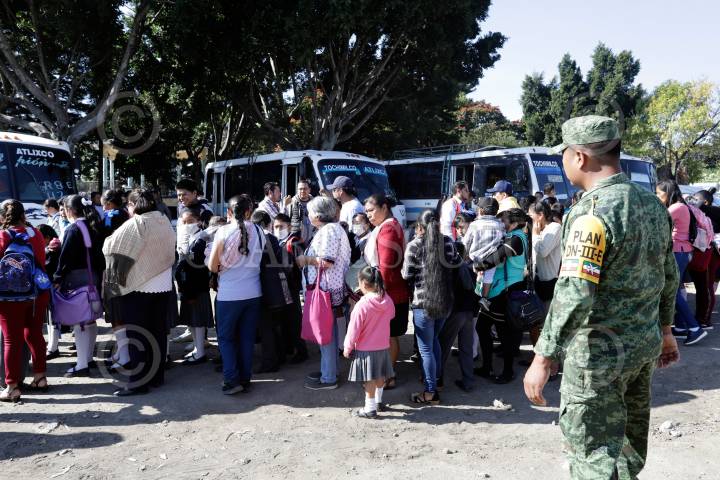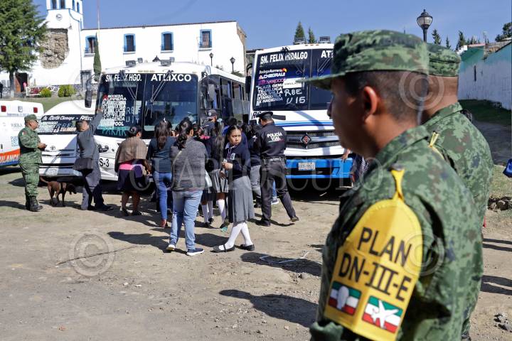 TOCHIMILCO PUEBLA, 27NOVIEMBRE2019.- La Secretaría de Gobernación en coordinación con Protección Civil, Policía Estatal, Bomberos, y Plan DN-III, realizaron el simulacro de Evacuación del volcán Popocatépetl, ante un posible incremento de actividad del coloso de amarillo fase 3 a rojo fase 1 en el municipio de Tochimilco. FOTO: MIREYA NOVO /CUARTOSCURO.COM