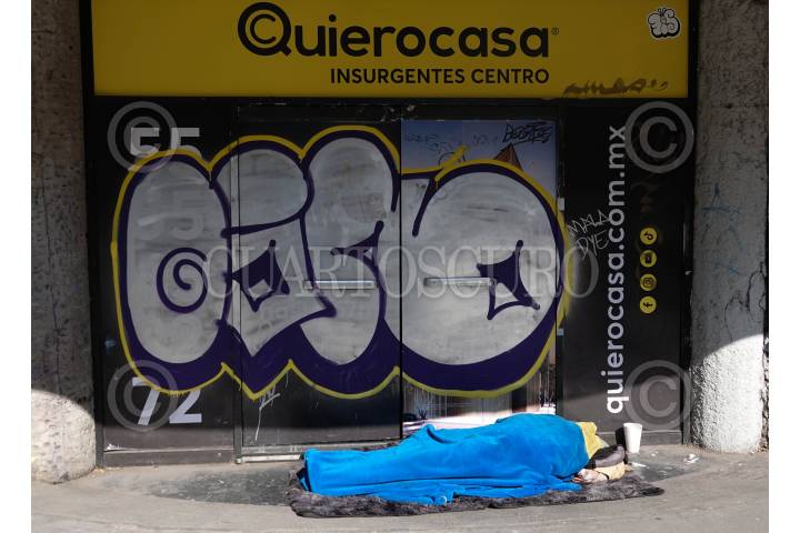 CIUDAD DE MÉXICO, 28NOVIEMBRE2024.-Una persona en situación de calle duerme tapada con una cobija bajo un letrero con la inscripción "QuieroCasa" ante las alertas que se han encendido para la capital del país con motivo de las bajas temperaturas. La Secretaría de Gestión Integral de Riesgos y Protección Civil activó el color amarillo para las zonas altas de al menos siete alcaldías de la ciudad: Álvaro Obregón, Cuajimalpa, Magdalena Contreras, Milpa Alta, Tláhuac, Tlalpan y Xochimilco, las autoridades invitan a la ciudadanía a mantener las precauciones y cuidados para evitar enfermedades respiratorias durante la epoca de frío. FOTO: GALO CAÑAS/CURTOSCURO.COM