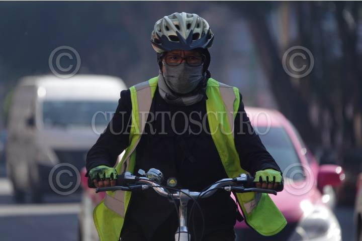 CIUDAD DE MÉXICO, 28NOVIEMBRE2024.-Un ciclista utiliza guantes y cubrebocas ante las alertas que se han encendido para la capital del país con motivo de las bajas temperaturas. La Secretaría de Gestión Integral de Riesgos y Protección Civil activó el color amarillo para las zonas altas de al menos siete alcaldías de la ciudad: Álvaro Obregón, Cuajimalpa, Magdalena Contreras, Milpa Alta, Tláhuac, Tlalpan y Xochimilco, las autoridades invitan a la ciudadanía a mantener las precauciones y cuidados para evitar enfermedades respiratorias durante la epoca de frío. FOTO: GALO CAÑAS/CURTOSCURO.COM