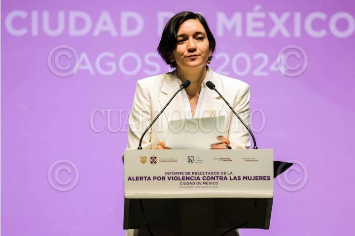 CIUDAD DE MÉXICO, 26AGOSTO2024.- Ingrid Gómez, secretaria de la Cultura; durante el informe mensual de resultados de la Alerta por Violencia contra las Mujeres, que se llevo acabo en el Teatro Metropólitan. FOTO: GOBIERNO DE LA CIUDAD/CUARTOSCURO.COM