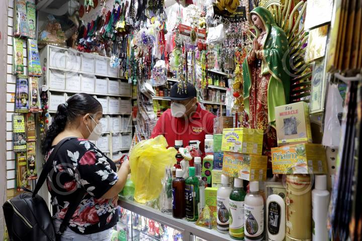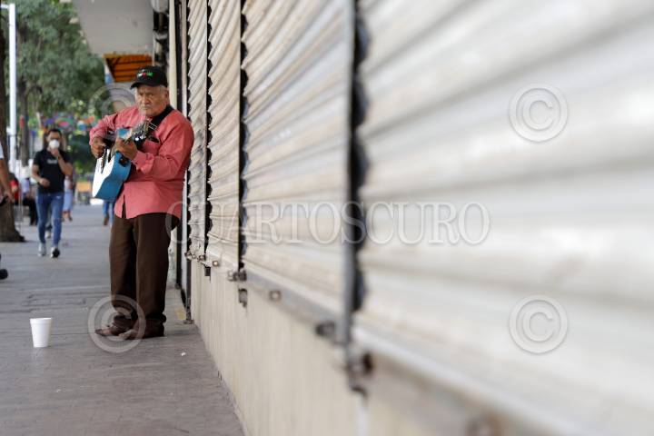 Una mujer sin cubrebocas camina por las calles de la colonia Juárez, la capital se encuentra en semáforo naranja tras el aumento de casos positivos de Covid-19.