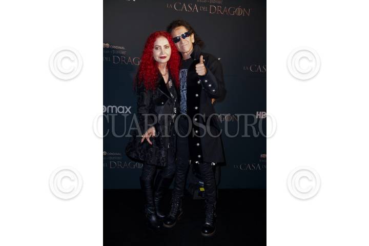 Chela Lora y Alex Lora durante la alfombra negra de la nueva producción de HBO “La Casa del Dragón” en el Colegio de San Ildefonso en la Ciudad de México.