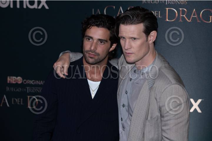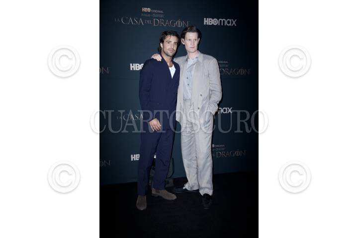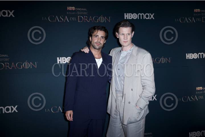Los actores Fabien Frankel y Matt Smith durante la alfombra negra de la nueva producción de HBO “La Casa del Dragón” en el Colegio de San Ildefonso en la Ciudad de México.