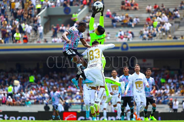 Avilés Hurtado (Pachuca) y Alfredo Talavera (Pumas), durante el partido de la jornada 17 del torneo Grita México Clausura 2022 de la Liga BBVA MX.