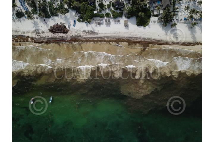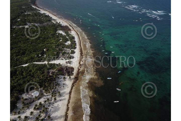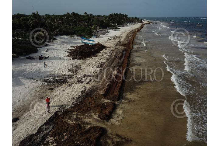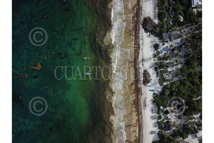 TULUM, QUINTANA ROO, 12JULIO2019.- Playas como Pescadores, Maya y Paraíso, muy cerca de la zona arqueológica de Tulum, una de las más turísticas del estado, se encuentran llenas de sargazo durante esta temporada vacacional; comerciantes de la zona se quejan de la baja notable de visitantes y en esta zona no se observa ningún trabajo por quitar el alga de las playas. FOTO: ISAAC ESQUIVEL /CUARTOSCURO.COM