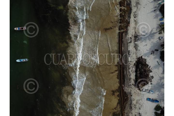 PLAYA DEL CARMEN, QUINTANA ROO, 04MAYO2024.- Aspectos del arribo de sargazo en playas del municipio de Playan del Carmen, el cual luce en menor medida comparado con otros años . FOTO: ELIZABETH RUIZ/CUARTOSCURO.COM
