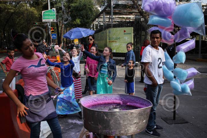 MÉXICO, D.F., 22DICIEMBRE2015.- En una de las entradas del Bosque de Chapultepec, niñas esperan la salida del algodón de azúcar e intentar atrapar un poco. FOTO: ISABEL MATEOS /CUARTOSCURO.COM