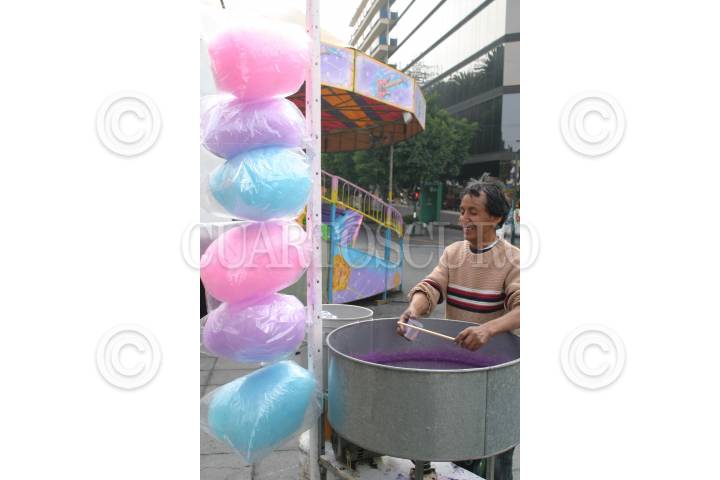 MÉXICO D.F. 26DICIEMBRE2007.-Decenas de familia acuden al Monumento a la Revolución donde fueron colocados puestos ambientado con motivos navideños y con genente disfrazada de los Reyes Magos para tomarse la foto con ellos.en la imagen un hombre elabora un algodón de azúcar. FOTO: GUILLERMO PEREA/CUARTOSCURO.COM