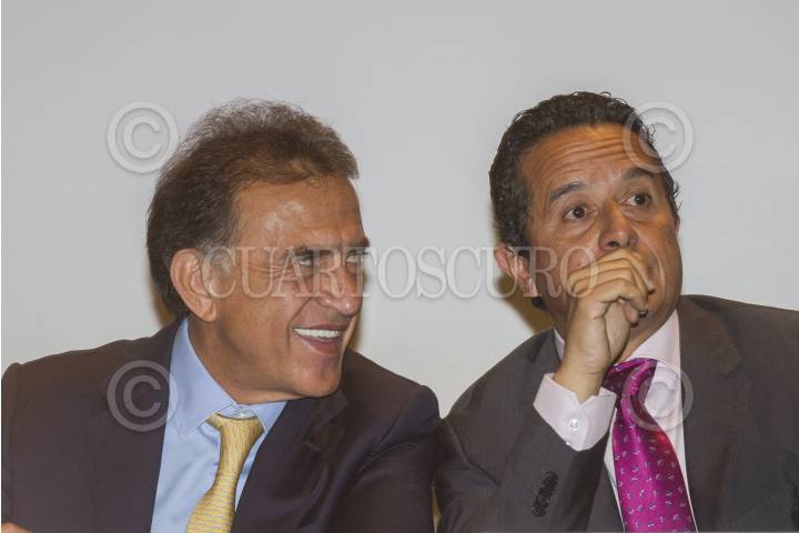 CIUDAD DE MÉXICO, 07JUNIO2016.- Miguel Ángel Yunes Linares y Carlos Joaquín González, candidatos de la alianza PAN-PRD y virtuales ganadores de las gubernaturas de Veracruz y Quintana Roo, respectivamente, durante la conferencia de los líderes de dichos partidos para hablar de los resultados de la jornada electoral pasada, en la que participaron en alianza y resultaron triunfadores en Veracruz, Quintana Roo y Durango. FOTO: ISAAC ESQUIVEL /CUARTOSCURO.COM