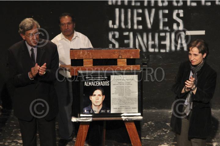 MÉXICO, D.F., 30MAYO2014.- Cuahutemoc Cárdenas Coordinador de Asuntos Internacionales del DF y la periodista Carmen Aristegui, develaron la placa de la representación de la obra teatral Almacenados. FOTO: SAÚL LÓPEZ /CUARTOSCURO.COM