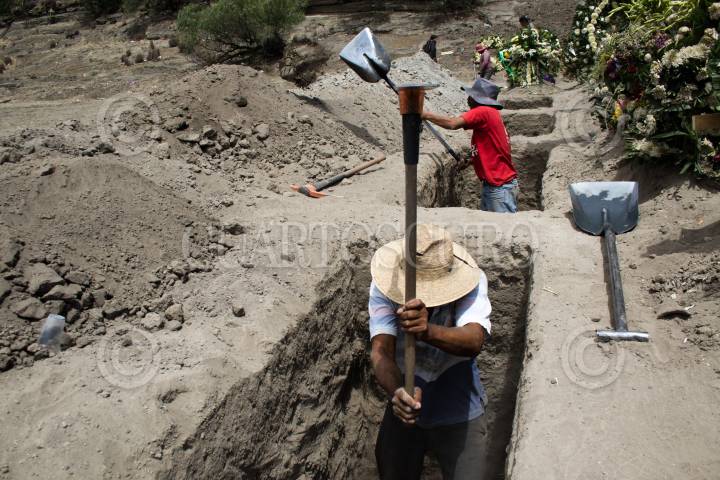 En promedio hacen siete servicios funerarios los trabajadores del Panteón Municipal de Chalco, esto debido a la alta demanda por la pandemia de Covid-19.