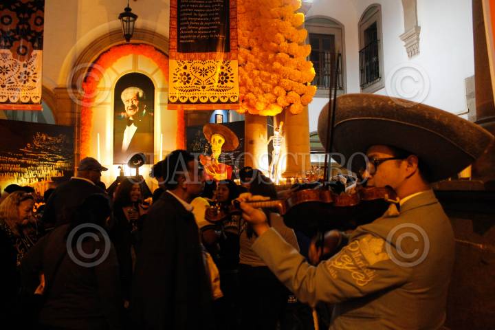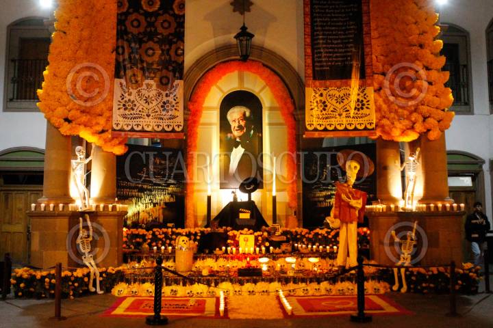 SAN LUIS POTOSI, SAN LUIS POTOSÍ, 01OCTUBRE2024.- El altar monumental en honor al primer actor Ignacio López Tarso fue inaugurado en el Centro Cultural Palacio Municipal de San Luis Potosí. El acto protocolario estuvo encabezado por el presidente municipal Enrique Galindo y tuvo como invitados de honor a la nieta del homenajeado Danae Miranda con su familia y el tenor Fernando de la Mora. FOTO: MARCELO PALACIOS/CUARTOSCURO.COM