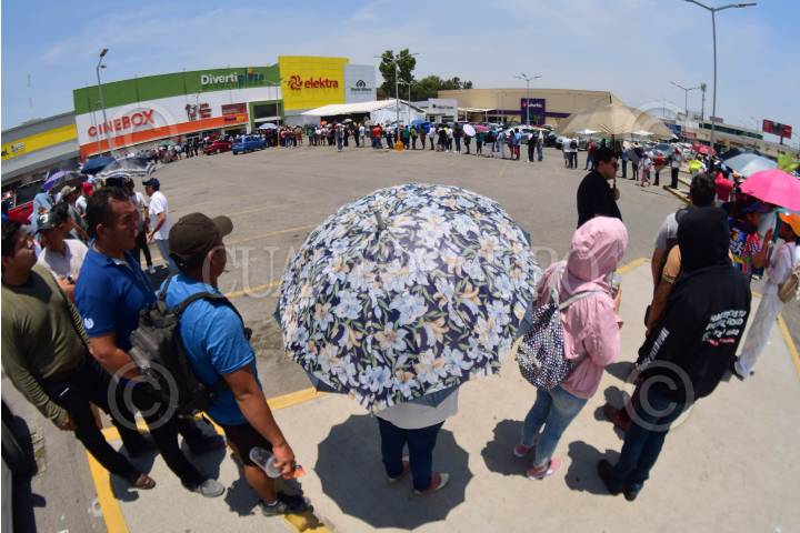 TULA DE ALLENDE, HIDALGO, 02JUNIO2024.- Ciudadanos en la región de Tula acudieron a las casillas bajo un intenso calor que azotó durante la jornada electoral., gente con sombrillas y una gran afluencia de electores se registró en las casillas, incluso a minutos de cerrar los centros de votación. FOTO: FRANCISCO VILLEDA/CUARTOSCURO.COM