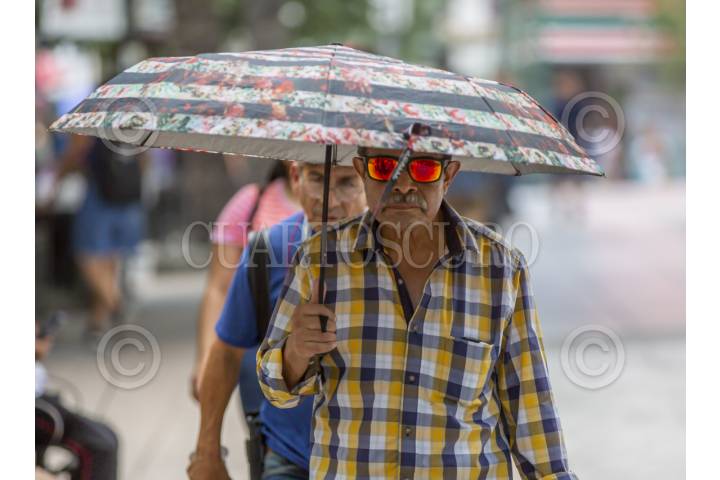 MONTERREY, NUEVO LEÓN, 09MAYO2024.- La oleada de calor en el país, provoca que en Monterrey y su zona metropolitana alcancen los 44 grados centígrados la tarde del 9 de mayo. Ciudadanos se protegen con sombrillas y bebidas frías durante el día. FOTO: GABRIELA PÉREZ MONTIEL / CUARTOSCURO.COM