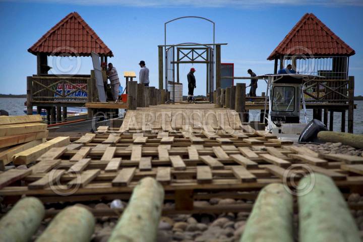 CULIACAN, SINALOA, 26MARZO2013.- Trabajadores del ayuntamiento de Navolato realizan el mantenimiento de carreteras así como del mulle en la playa de Altata debido a que los turistas hacen su arribo en estas vacaciones de semana santa. FOTO: RASHIDE FRIAS /CUARTOSCURO.COM