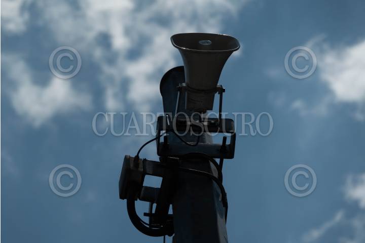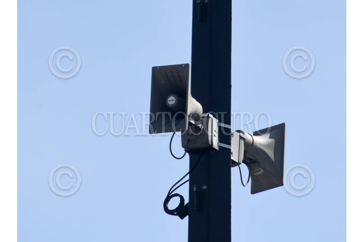Aspectos de los altavoces distribuidos al sur de la ciudad los cuales emiten la alerta sísmica y que no se activaron tras el movimiento telúrico de la noche del 10 de mayo.
