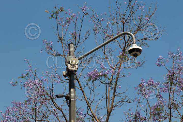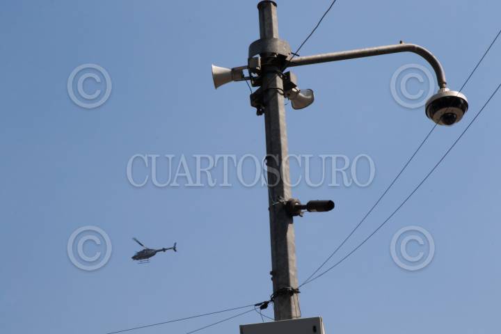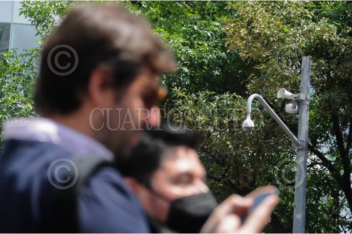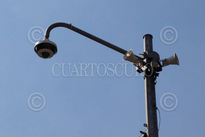 Con altavoces instalados en las cámaras de video vigilancia de la Secretaria de Seguridad del Estado de México se pide a la población quedarse en sus hogares ante la contingencia por COVID-19.