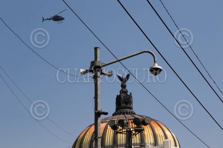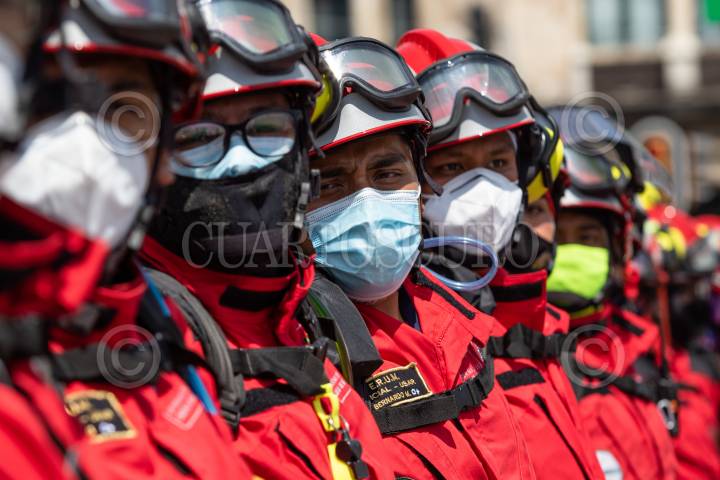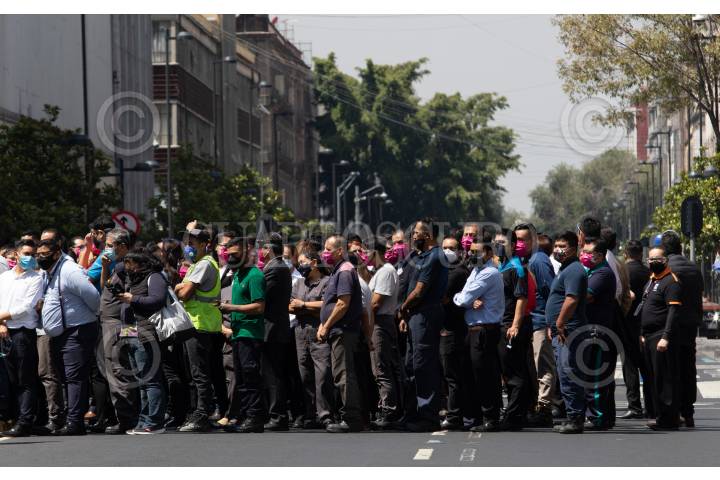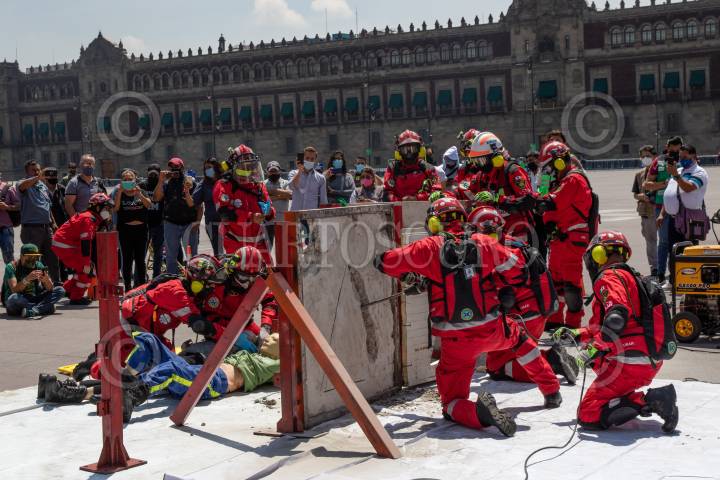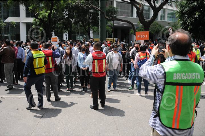 En punto de las 11:45 se realizó un megasimulacro en el primer cuadro, con hipótesis de sismo de 8.1 grados en la escala de Richter, el ejercicio fue coordinador por elementos de Protección Civil.