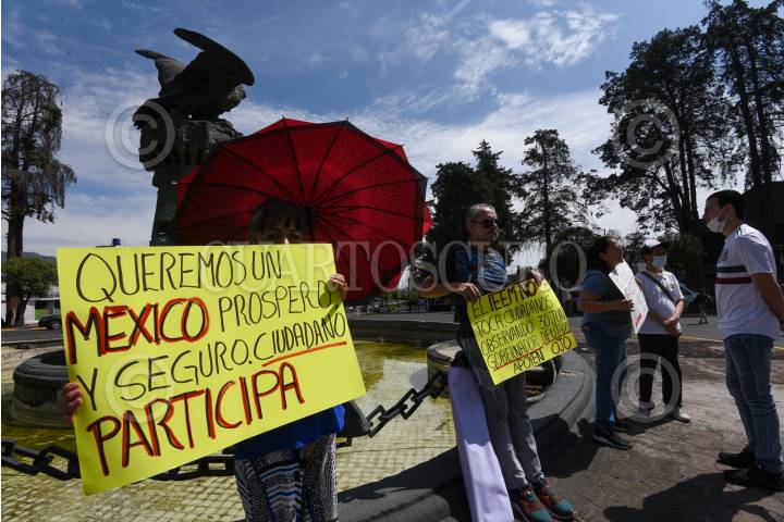 Piden un Alto a la Violencia en México protestando en el Monumento al Águila en Toluca.