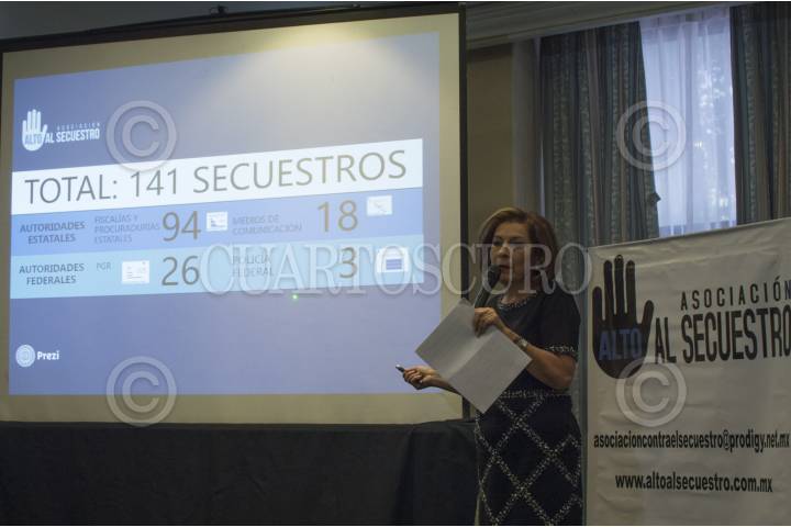 CIUDAD DE MÉXICO, 22MARZO2017.- La presidenta de las Asociación Alto al Secuestro, Isabel Miranda de Wallace, dio a conocer su balance mensual de secuestros ocurridos a los largo del territorio nacional. La cifra que presentó es de 141 secuestros, ocurridos en su mayoría en el Estado de México y en Veracruz. FOTO: SELENE PACHECO /CUARTOSCURO.COM