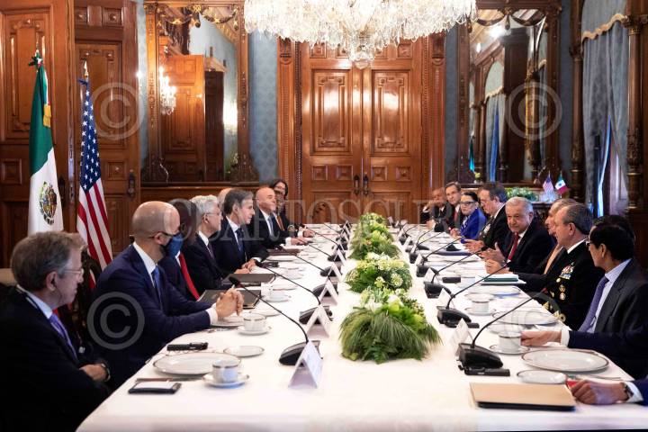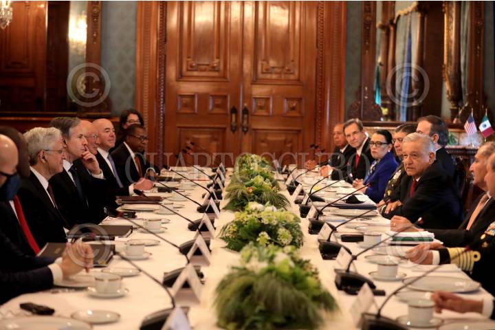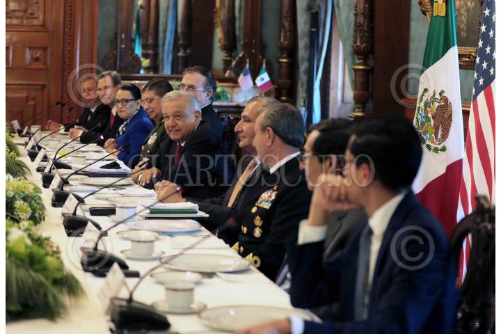 Reunión de Alto nivel entre los Gobierno de México y Estados Unidos de Norteamerica, esta mañana en Palacio Nacional.
