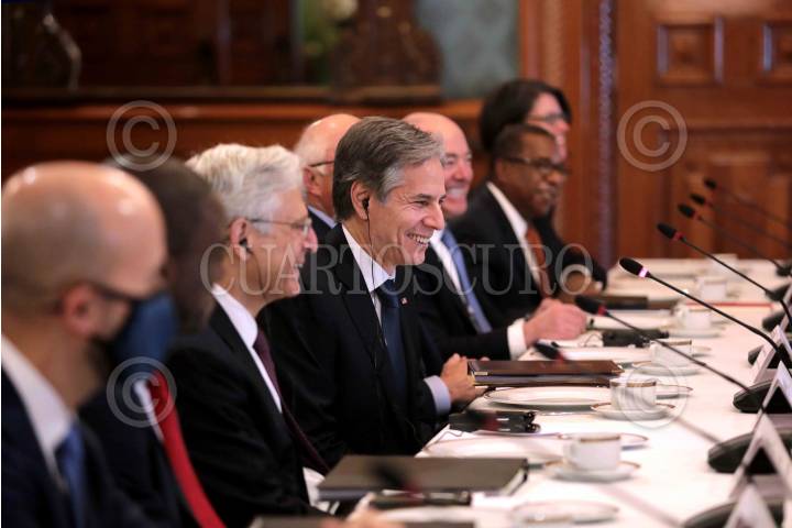 Tatiana Clouthier, secretaria de Economía; Marcelo Ebrard, secretario de Relaciones Exteriores; Kamala Harris, vicepresidenta de Estados Unidos, Antony Blinken, secretario de Estado de los Estados Unidos, secretario de Estado, encabezaron la reactivación del Diálogo Económico de Alto Nivel entre México y Estados Unidos (DEAN).