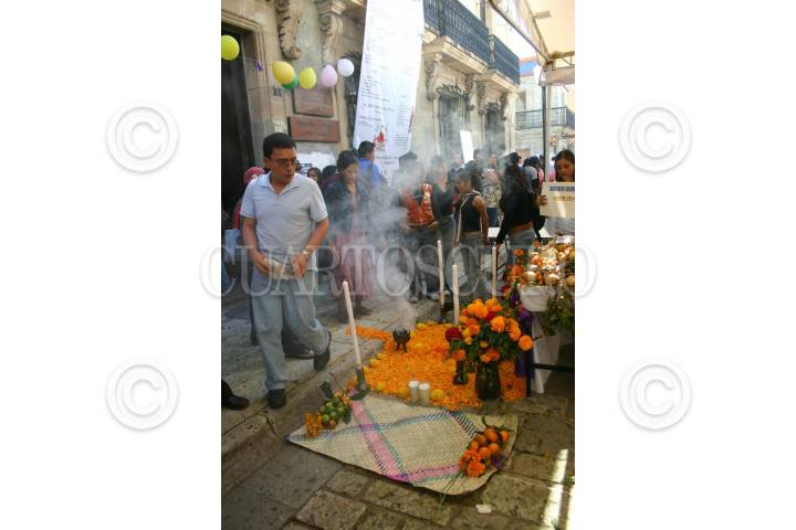 OAXACA, OAXACA 26OCTUBRE.-El gobernador del estdo de Ulises Ruiz inauguro hoy sobre el andador turístico de la ciudad la muestra de artesanías, y la vendimia de las mismas, también una expocision de costumbres alusivas al mes de noviembre que el gobierno y turismo organizan.En la imagen se observala tradicional ofrenda del día de muertos. FOTO: MAX NUÑEZ/CUARTOSCURO.COM