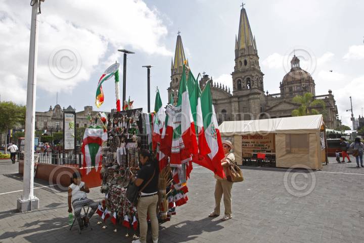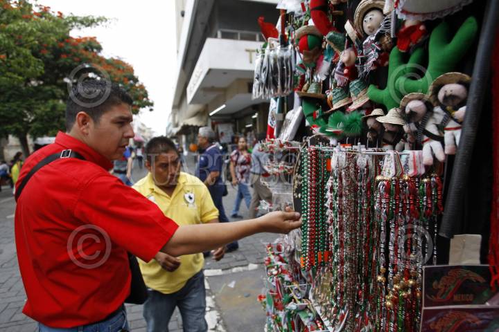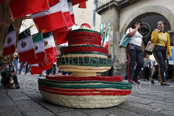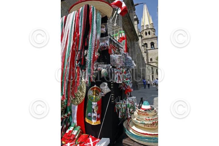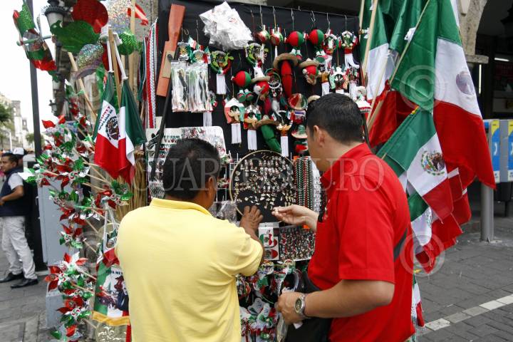 GUADALAJARA, JALISCO. 03SEPTIEMBRE2015.-A doce días del día de la Independencia de México, en el centro histórico de la ciudad ya se observan varios puestos de artículos tradicionales alusivos a México. FOTO: FERNANDO CARRANZA GARCIA / CUARTOSCURO.COM