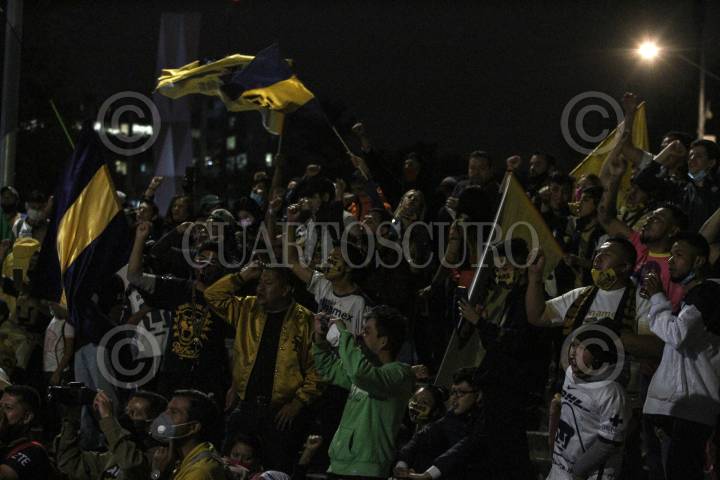 Aficionados de los Pumas a las afueras del estadio Universitario. FOTO: ROGELIO MORALES /CUARTOSCURO.COM