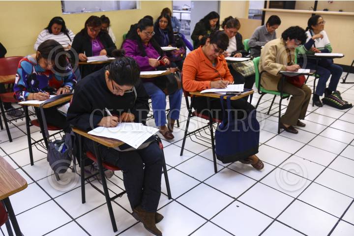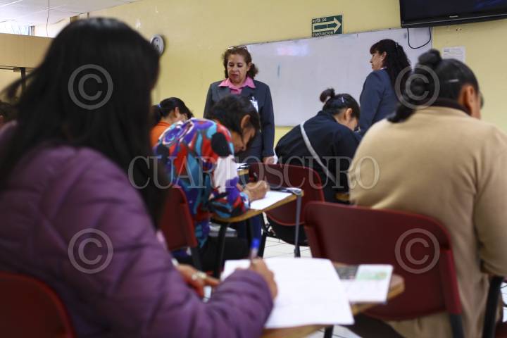 MEXICO, D.F., 10AGOSTO2014.- Trabajadoras del hogar del Distrito Federal se inscribieron al primer curso de capacitación laboral en Nutrición y Salud en el Cecati número 73, ubicado en la delegación Iztacalco. La Secretaria de Trabajo del Distrito Federal, Patricia Mercado fue la encargada de cortar el listón que puso en marcha este programa, con el que se busca que las mujeres que se dedican a las labores domésticas como oficio, tengan una mejor preparación y puedan aspirar a un mejor ingreso. La secretaria señalo que en el D.F. existen alrededor de 300 mil mujeres que se dedican a estas actividades, de las cuales son sobre explotadas con jornadas laborales de más de ocho horas aquellas que trabajan de planta. FOTO: DAVID POLO /CUARTOSCURO.COM