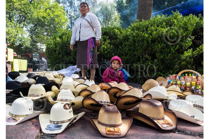 CIUDAD DE MÉXICO, 10JUNIO2018.- Una mujer y su hijo, venden sombreros dentro de la tercera Sección del Bosque de Chapultepec, donde también se llevo a cabo el día Zacatecano. FOTO: ANDREA MURCIA /CUARTOSCURO.COM