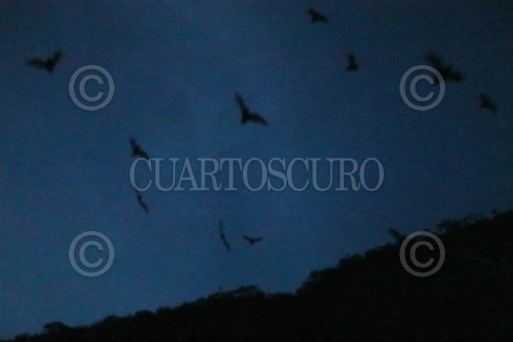 Miles de murciélagos salen de su santuario al atardecer en la comunidad nahua de Tlalcozotitlan, regalando un espectáculo único en el cerro del León en la unión de los ríos Balsas y Amacuzac.