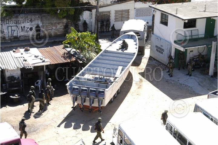 ACAPULCO, GUERRERO 09FEBRERO2010.- La Armada de México aseguró 3 lanchas en un taller de transporte público ubicado en la calle Garzas del fraccionaminento Las Playas. FOTO: BERNANDINO HERNÁNDEZ/CUARTOSCURO.COM