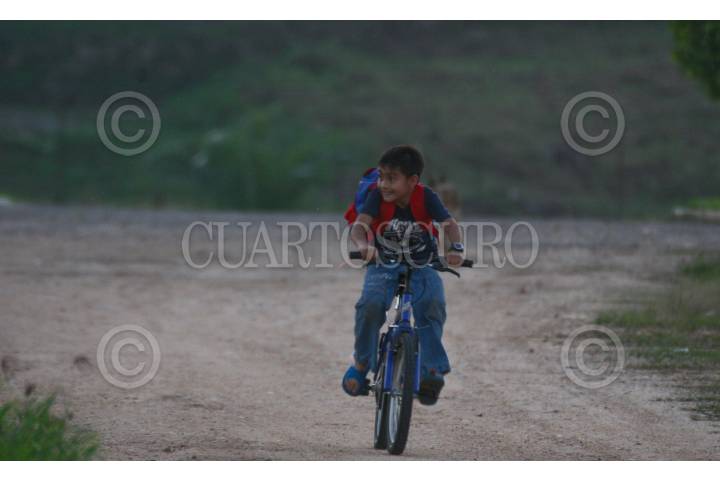 TENOSIQUE, TABASCO, 21ENERO2010.- Un niño a gran velocidad sobre su bicicleta en esta mañana para llegar puntual a al horario de entrada en la escuela. FOTO: MARCO POLO GUZMÁN HERNÁNDEZ/CUARTOSCURO.COM