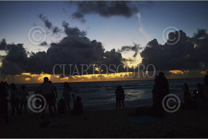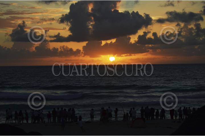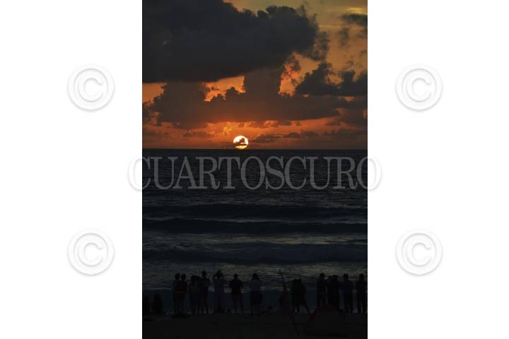 CANCÚN, QUINTANA ROO, 01ENERO2016.- Cientos de cancunenses y turistas se dieron cita en playa delfines para observar los primeros rayos del sol de este 2016. Quintana Roo fue el primer estado en recibir el año nuevo. FOTO: ELIZABETH RUIZ /CUARTOSCURO.COM