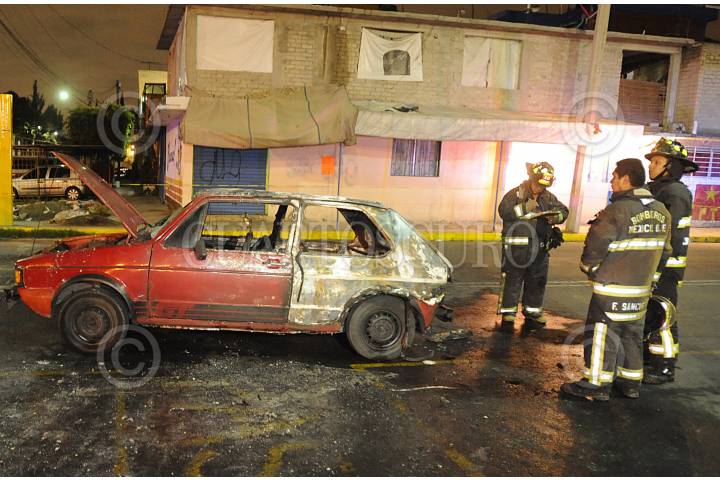 MÉXICO, D.F., 07SEPTIEMBRE2011.- El cuerpo de un hombre, fue encontrado ejecutado y maniatado al interior de un auto Volks Wagen Caribe de color rojo, después de que elementos de Bomberos sofocaran el fuego que lo envolvía y que reportaron vecinos que en la calle de Damiana y Mitle de la colonia El Molino en la Delegación Iztapalapa. Al sofocar el fuego los elementos de bomberos, descubrieron que en el asiento trasero se encontraba el cadáver. FOTO: LUIS CARBAYO/CUARTOSCURO.COM