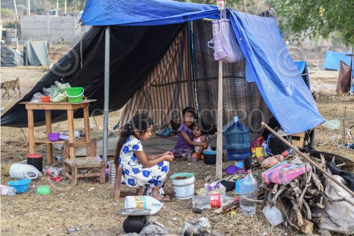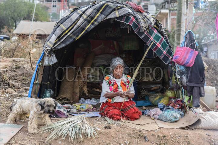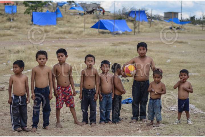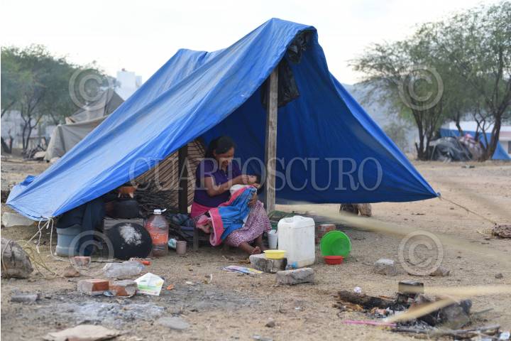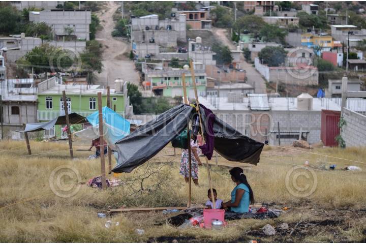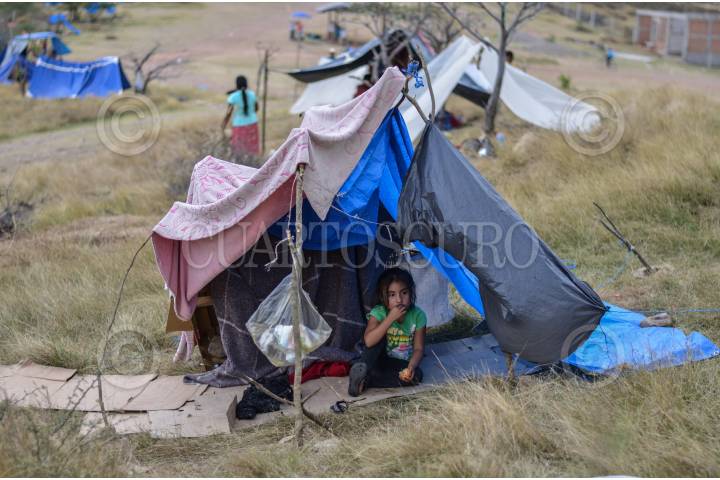 TLAPA, GUERRERO, 05ENERO2019.- Alrededor de 152 familias del municipio de Cochoapa el Grande que se dedicaban a la siembra de amapola se desplazaron de sus comunidades debido a que las ventas de la planta, que es su principal sustento, bajaron. El grupo se asentó en un terreno baldío de la ciudad de Tlapa, para exigir que gobierno estatal y federal brinde atención rápida a las familias indígenas. Las familias de La Montaña de Guerrero se mantienen de la siembra de amapola y de los envíos de dinero por parte de familiares empleados en los campos agrícolas del norte del país. Ante la baja en la venta y cotización de la planta, se vieron obligadas a migrar para huir de la pobreza extrema. Algunas familias han denunciado que sus ingresos son de 2 mil pesos anuales en promedio. Los desplazados son originarios de Tierra Blanquita, San Lucas, San Cristobalito, Llano de la Piedra, San Miguel el Nuevo, San Rafael, Llano del Metate y Rancho San Marcos, comunidades que –de acuerdo con el Inegi– tienen los indicadores de pobreza más altos de México, 56% de su población es analfabeta; 74% no es derechohabiente de algún sistema de salud, y 80% no cuenta en escusado o drenaje.Más de 500 personas, entre adultos y niños, permanecen en el campamento en la colonia Las Mesas. Ahí, con palos, cobijas y lonas, construyeron pequeños refugios para resguardarse de la lluvia, el calor y el frío. Las familias aseguran que prefieren morir en la ciudad de Tlapa que regresar a sus pueblos con mucho más dolor y soledad, asegurando que en sus lugares de origen no existe futuro para nadie. FOTO: YAOTL SILVA /CUARTOSCURO.COM