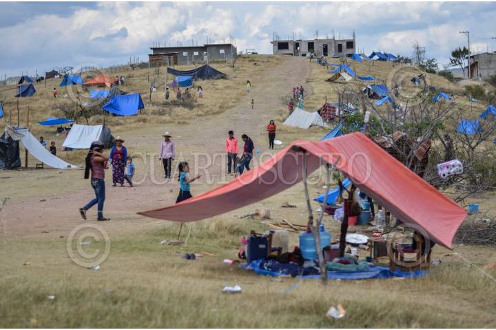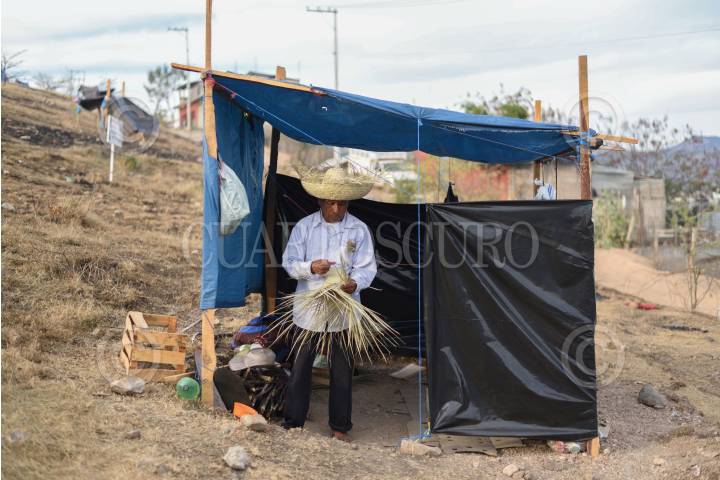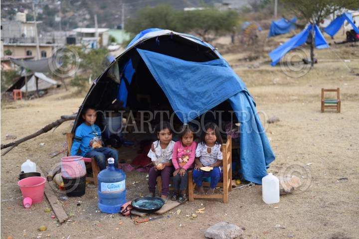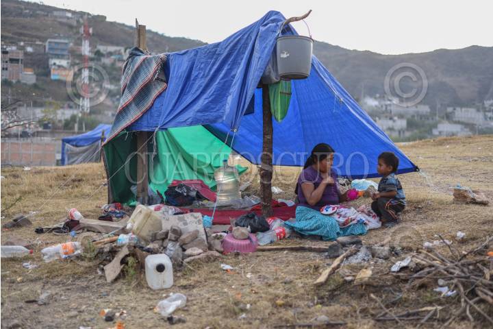 TLAPA, GUERRERO, 04ENERO2019.- Alrededor de 152 familias del municipio de Cochoapa el Grande que se dedicaban a la siembra de amapola se desplazaron de sus comunidades debido a que las ventas de la planta, que es su principal sustento, bajaron. El grupo se asentó en un terreno baldío de la ciudad de Tlapa, para exigir que gobierno estatal y federal brinde atención rápida a las familias indígenas. Las familias de La Montaña de Guerrero se mantienen de la siembra de amapola y de los envíos de dinero por parte de familiares empleados en los campos agrícolas del norte del país. Ante la baja en la venta y cotización de la planta, se vieron obligadas a migrar para huir de la pobreza extrema. Algunas familias han denunciado que sus ingresos son de 2 mil pesos anuales en promedio. Los desplazados son originarios de Tierra Blanquita, San Lucas, San Cristobalito, Llano de la Piedra, San Miguel el Nuevo, San Rafael, Llano del Metate y Rancho San Marcos, comunidades que –de acuerdo con el Inegi– tienen los indicadores de pobreza más altos de México, 56% de su población es analfabeta; 74% no es derechohabiente de algún sistema de salud, y 80% no cuenta en escusado o drenaje.Más de 500 personas, entre adultos y niños, permanecen en el campamento en la colonia Las Mesas. Ahí, con palos, cobijas y lonas, construyeron pequeños refugios para resguardarse de la lluvia, el calor y el frío. Las familias aseguran que prefieren morir en la ciudad de Tlapa que regresar a sus pueblos con mucho más dolor y soledad, asegurando que en sus lugares de origen no existe futuro para nadie. FOTO: YAOTL SILVA /CUARTOSCURO.COM