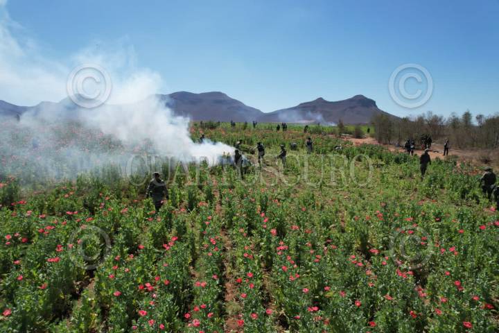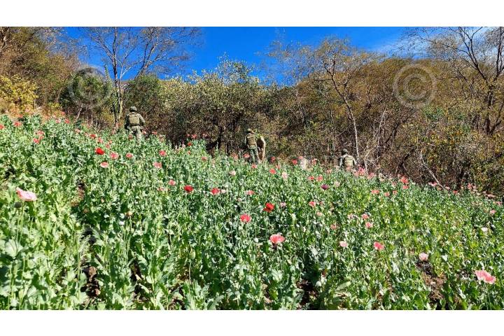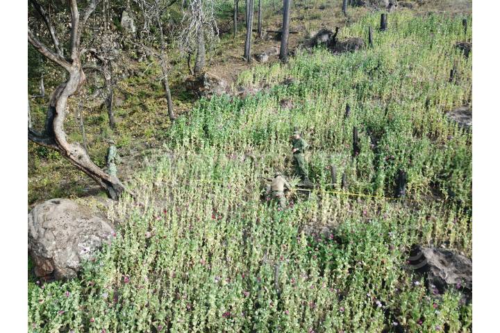 Ejército Mexicano y Guardia Nacional localizan en Sinaloa el plantío de amapola más grande del año.