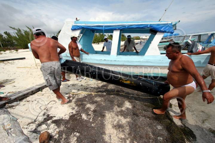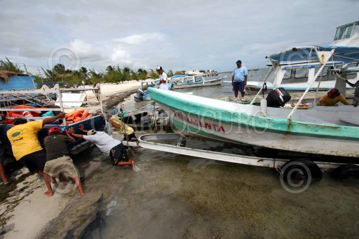 CANCÚN, QUINTANA ROO, 12OCTUBRE2010.- Pescadores resguardan sus embarcaciones ante la cercania del huracán "Paula" en las costas de Quintana Roo, se ha emitido alerta amarila para Cancún y naranja en la isla de Cozumel los puertos a la navegacion han sido cerrados. FOTO: AMARANTA PRIETO/CUARTOSCURO.COM