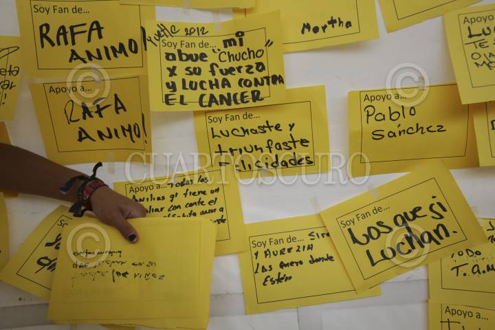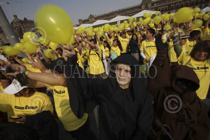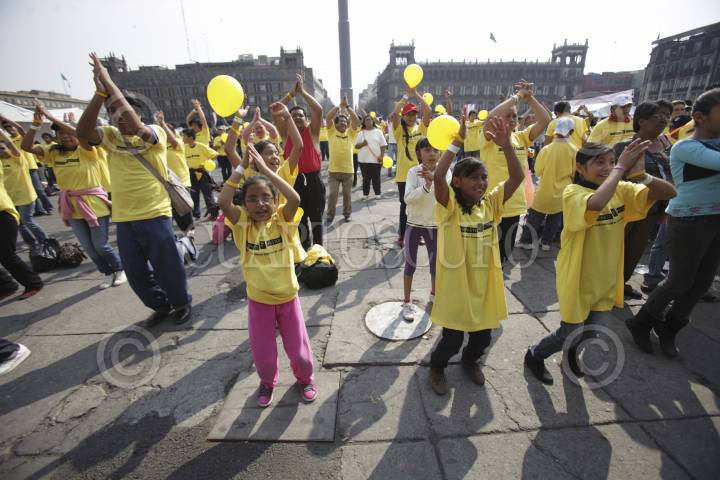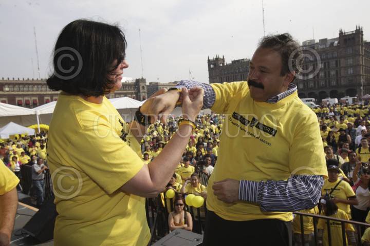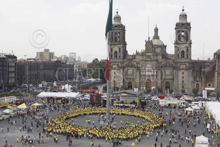 MÉXICO, D.F., 04FEBRERO2012.- La secretaría de Salud del Gobierno del D.F., la organización Live Strong, y otras organizaciones civiles conmemoraron el Día Mundial de la Lucha contra el Cancer. También realizaron el cinturón amarillo más grande del mundo, con el que se rompió el Record Guiness. FOTO: JUAN PABLO ZAMORA/CUARTOSCURO.COM